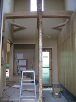 では、と吹き抜けの1F部分と2F部分の間に付け梁をして、1F部分のみ