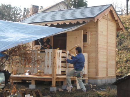 飾りをつけ、デッキをつけ(実は、デッキは、急きょ予定より広く変更)