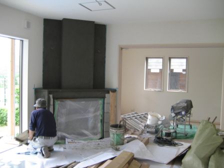 暖炉の凹凸も施主様と現地でいろいろとシュミレーションして決めたものです