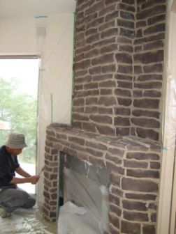 暖炉周りの石を貼ってもらっているところです。石の種類ももちろんこだ