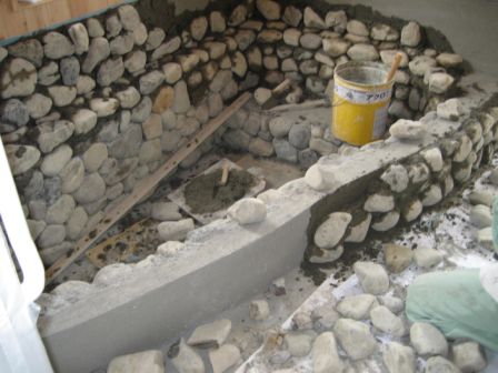 これは、お風呂の制作過程です。温泉ですもの、「露天風呂の雰囲気を出