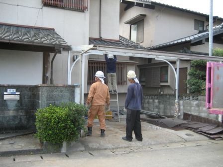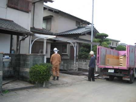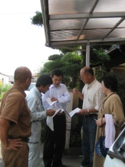 引越し後、お施主様と、解体屋さんと、植木屋さんと、セイ建の社長と